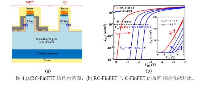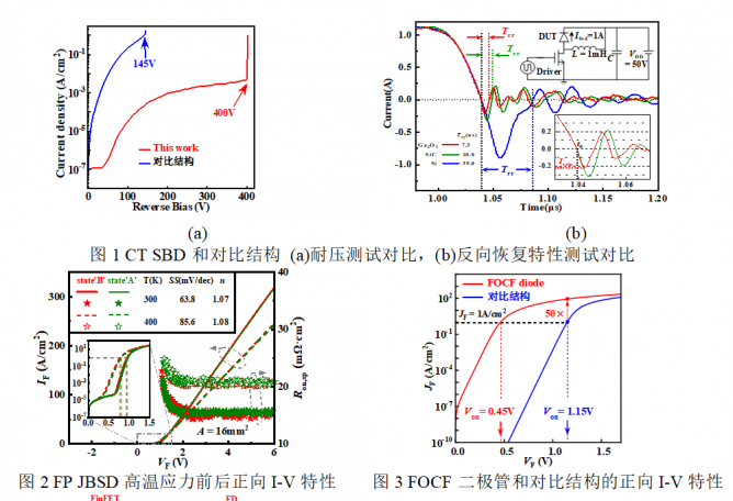 Ò»¡¢Ñõ»¯ïع¦ÂÊÆ÷¼þ Õë¶ÔÑõ»¯ïع¦ÂÊÆ÷¼þµÄ»÷´©µçѹԶµÍÓÚÀíÂÛ¼«ÏÞÇÒÄÑÒÔʵÏÖÔöÇ¿ÐÍÆ÷¼þµÄ¼¼ÊõÄѵ㣬ÏîÄ¿ÍŶÓÌá³ö4¸öнṹ£¬Ìá¸ßÕûÁ÷Æ÷¼þÄÍѹ²¢½µµÍ¿ªÆôµçѹ£¬ÌáÉý¾§Ìå¹ÜãÐÖµµçѹ²¢½µµÍ·´Ïòµ¼Í¨Ñ¹½µ¡£ÑÐÖÆ³ö¾ßÓÐ¿ÕÆøÇų¡°åºÍÈÈÑõ»¯Öն˸´ºÏ½á¹¹µÄÑõ»¯ïØÐ¤ÌØ»ùÊÆÀݶþ¼«¹Ü£¨CT SBD£©[1]£¬ÓëÎÞ¸´ºÏÖն˽ṹµÄÆ÷¼þÏà±È£¬»÷´©µçѹÌá¸ß176%£¬ÇÒ·´Ïò»Ö¸´Ê±¼äÏà½ÏÓÚÉÌÓÃSiCºÍSi¶þ¼«¹Ü»®·Ö½µµÍ25%ºÍ81%¡£ÑÐÖÆ¾ßÓÐNiO/Ñõ»¯ïØÒìÖʽáºÍ³¡°åµÄÑõ»¯ïؽáÊÆÀÝÐ¤ÌØ»ù¶þ¼«¹Ü£¨FP JBSD£©[7]£¬ÔÚ3000·ÖÖÓ¸ßÎÂÓ¦Á¦Ç°ºó£¬FP JBSDµÄÕýÏòI-V¡¢C-VÌØÐԺͻ÷´©µçѹÏÕЩÎȶ¨¡£Ìá³ö¾ßÓÐFin¹µµÀ¡¢Å·Ä·½Ó´¥Ñô¼«ºÍ¸´ºÏ³¡°åµÄÎÞ½á¶þ¼«¹Ü£¨FOCF Diode£©[2]£¬ÊµÏÖ0.45VµÍ¿ªÆôµçѹ£»²¢½«¸ÃÑõ»¯ïØÎÞ½á¶þ¼«¹ÜÓëFinFET¼æÈݼ¯³É£¬Ê¹µÃãÐÖµµçѹºÍ·´Ïòµ¼Í¨µçѹ¿ÉÒÔµ¥¶À¿ØÖÆ£¬»ñµÃ¼æ¾ßµÍ·´Ïòµ¼Í¨µçѹ0.45VºÍ¸ßãÐÖµµçѹ1.6VµÄÔöÇ¿ÐÍÑõ»¯ïØRC-FinFET [3]£¬ÔöÇ¿ÆäÔڸ߹¦Âʺ͵ÍËðºÄ¹¦ÂÊת»»ÏµÍ³ÖеÄÓ¦ÓÃDZÁ¦¡£